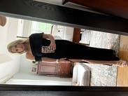 Nice thick black dress that doesn't wrinkle. Was a great length, but the torso was a little long so I pinned it.