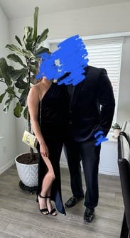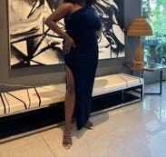 Fit me perfectly! Very luxurious velvet in beautiful rich navy. Deep slit. Prefect for a black tie event.