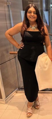 This dress was so chic for a black tie wedding! The only thing is I was pulling it up a lot but I’m pretty flat chested and I wouldn’t have sized down or it would have been small.