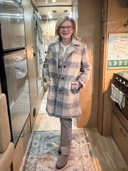 I love this coat, the cut was perfect. It’s great for high 40s and 50s. Really cute with a sweater, miniskirt, and boots.