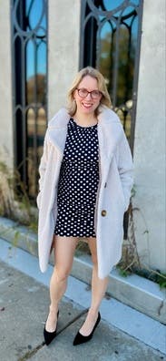 I loved this coat! I wore it for my pregnancy announcement that was outdoors. It kept me warm! I like that it’s an easy way to dress up an outfit.