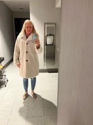 Loved this comfy coat which can be dressed up or down. I sized down based on the reviews and I’m glad that I did.