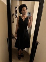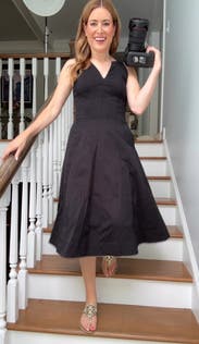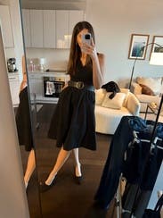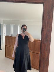 Ok I rented it for work but my coworker made a great point that this is also a really good funeral dress… lol.. sad but true. It’s super flattering and doesn’t cut too low on the front. I will say - I had to unzip this by myself one night at home and it was TOUGH! And I’m double jointed!! It’s a tad bit tight on the chest for my D’s so that didn’t help but fair warning, you might want someone to zip you in the back! But the pleating is very flattering on my short torso + curves