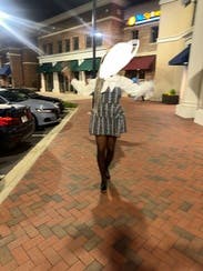 I received so many compliments on that dress. Worn to a themed work party. I’m 5’3 and 145 and the L fit me perfectly but it’s very short. I paired with silver pumps and silver jewelry. I was going for an Alice in Wonderland look.