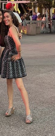 Daughter had a BatMizvah, it was cute and perfectly age appropriate for the event! It was definitely comfortable for her to dance and be herself. Was a little on the short side but nothing booty shorts didn’t help! She is 5’1” and 100lbs, wore the xs. It was snug but size small ended up a bit baggy.
