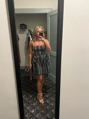 I am obsessed with this dress and so was everyone else!! I literally moment at a gala where everyone wore long gowns and I put this number on … iconic! It obviously is super short and I’m 5’9 so you have to wear tights but Rent this! Adorable and sexy!