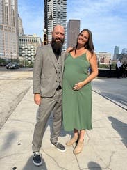 Loved that this dress had space for my bump in my third trimester. I wore this out and about and to dinner. Fit was spot on and the color was rich and beautiful.