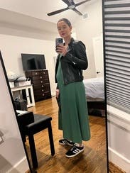 Wore this for my anniversary dinner at 38 weeks pregnant and it was perfect! Paired it with straw sandals, and a cute clutch. Would be great with strappy heels or even a pair of sneakers and a leather jacket. Very versatile!