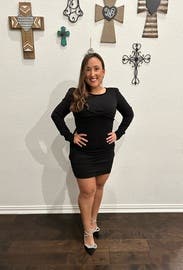 Sparkly tight fit black dress that was perfect for a girls night holiday party. I'm only 5'1" and it was short on me but very cute!