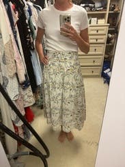 Easy skirt to throw on with a plain tee, or dress up with a nicer fabric top. I liked the versatility. I have a wider ribcage, so this did feel slightly tight on me, even as a Medium. I don't think I would have gone up a size though.