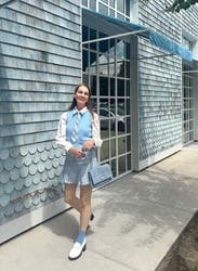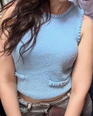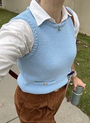 This soft blue vest is perfect for a schoolgirl look and for transitioning into fall. IG @bethielife