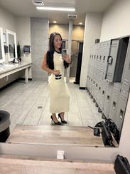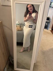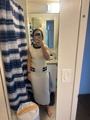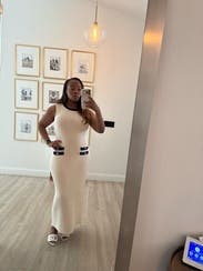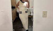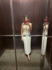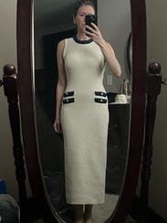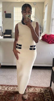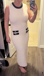 This dress was sleek and polished, with a flattering fit that hugged the body in all the right places. The button details added a nice touch of sophistication. That said, the material is extremely heavy — definitely better suited for cooler weather or indoor events. It looked great on, but I wouldn’t recommend it for hot days.