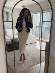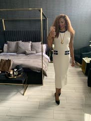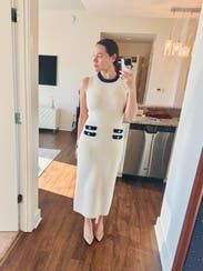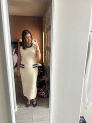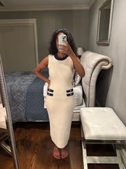 This little sailor inspired dress is so cute for work! This is actually my second time renting this dress. It’s so comfortable and keeps it shape. Hugs all the right spots 10/10 recommend