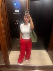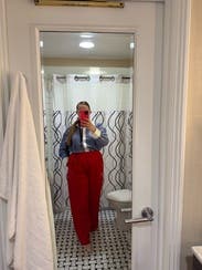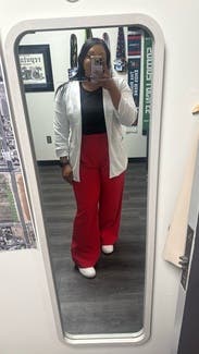 Total power move, this bright red set makes a statement. The strapless button-up top pairs with wide-leg trousers for a sleek, standout look. Pants do run long, so best with heels or tailoring. Loved mixing the pants with other tops too. I could wear them every weekend if I could lol