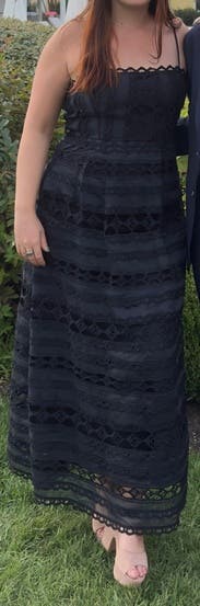 Loved this dress. Was a little afraid it wouldn’t translate for a wedding as it’s black, but it worked beautifully and I felt beautiful too. Would wear this again in a heartbeat.
