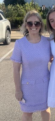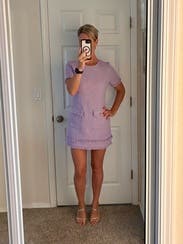 Wore for a 1st lady themed event! Would be perfect for brunch or any spring event. The color is gorgeous, tweed is so classic & the lilac is the perfect shade.