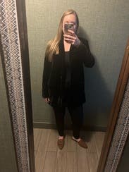 Loved this velvet blazer but it was coming apart at the seam on the inside lining. I wore it anyway since it wasn’t noticeable and I got lots of compliments!