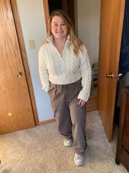 This is an easy fall piece that’s super versatile. It fits well and is soft and cozy.