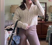 Perfect to look put together when you want to be cozy. It is cropped so if you have a long torso prepare.