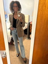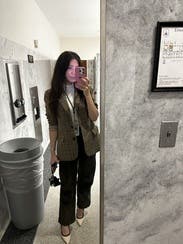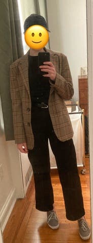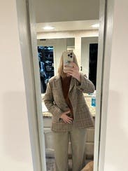 I’ve wanted to try the oversized plaid blazer trend for a while but didn’t want to commit to the price. This was PERFECT! It fit me like a glove. I was able to wear a lightweight sweater with it and didn’t feel like the arms were squished. Perfect weight and high quality. I received a million compliment. (Please ignore my messy room 😅)