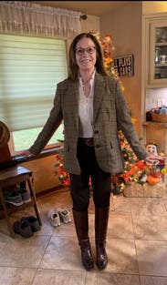 I live in Texas, so I wanted something that looked autumnal but wasn't too warm and didn't contain wool - this worked perfectly. The material is synthetic, but feels very high-end and looks brand new; it's holding up to RTR's washing and packing very well (and this is from someone who's typically a synthetic fiber-hater!). Fit was intentionally slightly oversized and fit well over my larger hips. I work at a university, and I got stopped by several students on the sidewalk to compliment my outfit - even the youths liked it!
