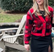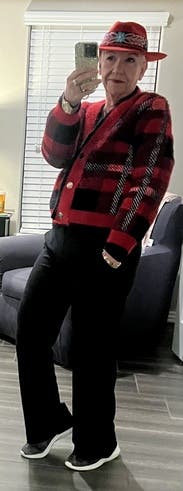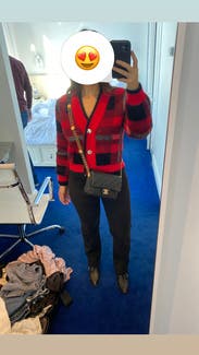 Warm, seasonal fun tartan with a cropped fit. Think updated 90s mom Christmas vibes.