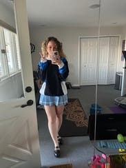 These skorts are are so cute! I loved the light blue color and pleats. It felt sporty and sexy. It is a bit short, but of course the built-in shorts help with that! It runs true to size, and there is not much stretch to the fabric. This was an easy wear, and I paired it with a crop top!