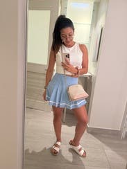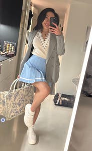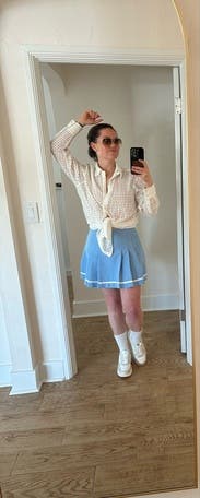 Loved experimenting with the tennis core trend right now. This skort is a more dressed up version compared to the athleisure options around. Size-wise, I managed to wear the XS with a tucked in T-shirt, but it was a snug fit. If I rented again, I would size up for comfort.