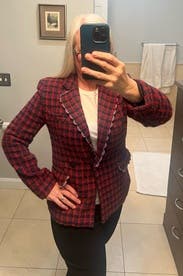Absolutely the cutest jacket. Fit great, great quality. I wore it with black pants and black fitted top for Valentines Day. My kids told me I looked like a "rich mom". Ha! Definitely would rent again.