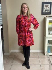 I paired this colorful dress with warm leggings and boots for a day at work, and I received so many compliments! Easy to wear, different but functional. The colors are wow! So fun to look fun and still be able to function in the “real world” classroom.