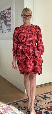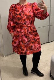 This dress really grew on me and I wore it a ton - to work with flat boots and tights, out with heeled booties, and with cute wedge slides. It’s wide in the skirt and sometimes I bunched up the extra fabric in the back for a sleeker fit. But I loved the colors, pattern, fabric texture (a bit stiff so really holds shape, but still lightweight) and the volume grew on me. I considered buying (and may still).