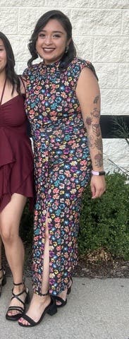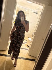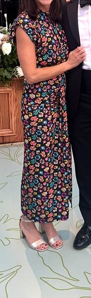 I got so many compliments on this! It's very flattering and super comfortable (has a little stretch in the mid-area). It's refreshing to find a fitted dress that doesn't require shapewear underneath. Hugs in all the right places, and has just the right amount of sex appeal with the high-ish slit. Would definitely wear again!