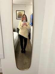 It is super tight to get on and I definitely needed to do my make up second. I really liked it from the front and from the back, but from the side, it definitely added to my frame. I wished the material was more cozy and less structured because it was a little scratchy.