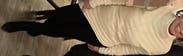 It looks great with tighter-fitting jeans or pants, but it does not work well with loose-fitting trousers. I styled it in a similar manner to the model.