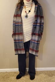 I really liked this except if did not flow well with the body, at least not mine. It was warm and cozy and with skinny jeans tucked into boots it looked nice