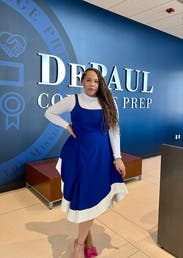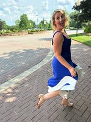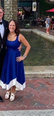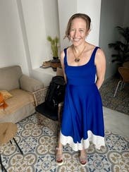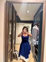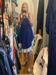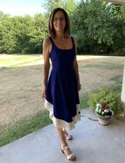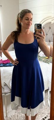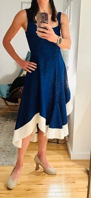 Love this dress! Great color and easy to accessorize. Really fun to dance in! Looks great on my shape / size.
