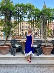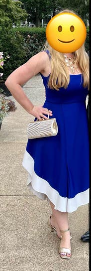 Wore to a wedding in Venice. That hem is so fun! I did have to tape the straps to my shoulders so they wouldn't fall, but nothing that caused problems or looked funny. I danced the night away and felt great!