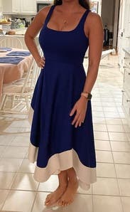 I got so many compliments on this dress. I decided to get this to wear for 4th of July weekend celebrations. It was really comfortable. The material is great quality. Kind of thick material but not hot material. The fit around the top was perfect and flowed down nicely.