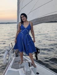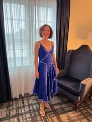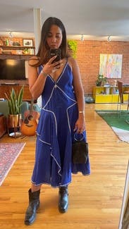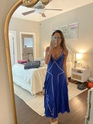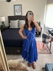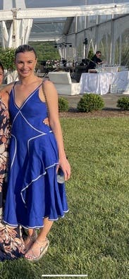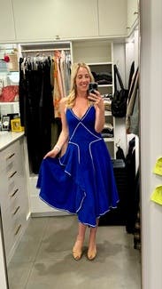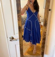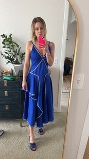 Wore this to the rehearsal dinner for my friend’s wedding, it was the perfect “something blue!” The fit and fabric were both divine, even in extreme heat. Highly recommend!