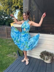 This dress is so easy to style and looks great on all skin tones. I ordered a 4 and a 6 and ended up wearing the 6 because I have a broad chest and shoulder. For the girlies with a bigger chest, it shows off some tasteful underboob! This dress received a lot of compliments. Gave it 4/5 stars because sometimes the halter top felt like it was a bit too tight around my neck.