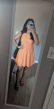 Cute dress for summer! It's athleisure but more on the leisure than the athletic side. I liked the slit but felt it was high so I wore shorts underneath so I wouldn't have to worry about it.