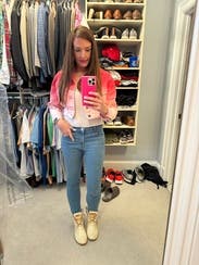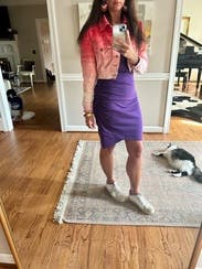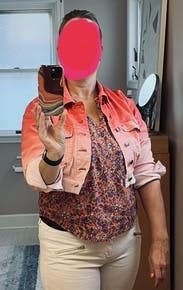 I loved this pink ombré jacket and rented it for the Barbie movie. The fit was boxy (as expected) and a little large for me but I made it work a few times for casual office setting and running errands.