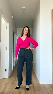 I love this hot pink sweater because the color is amazing. The fit is a little bit odd. It is very snug across the top and the sleeves are also a little snug but puffy at the same time. It was OK for a one time rental, but I’m not going to wear it again.