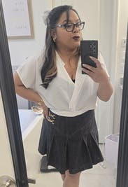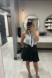 Loved this skirt! The fit was flattering and comfortable, with just enough structure to feel polished. The pleats and side buckle details added a cute, stylish touch without being too much for a professional setting. Paired it with a white blouse and felt confident and put-together all day. Would definitely wear again!