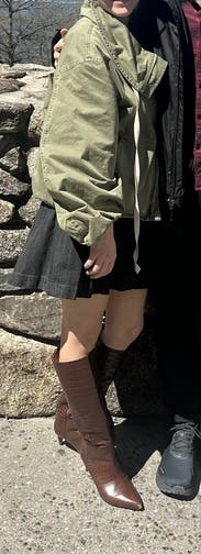 Can dress up or down. Wore it with loafers and another time with thigh high boots. I could have went down a size as the waist was slightly loose and I would have like it to be maybe an inch shorter