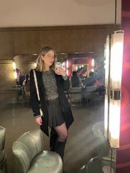 Pared with a black turtleneck sweater, black tights, and black booties. I received so many compliments! Definitely recommend! I did wear the size 6 so the skirt sat at my hips.