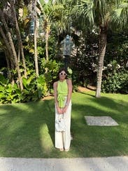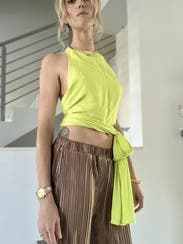 Loved this top for a beach party in Greece. I should have gotten an xs (size is true-to-size and the small was just a little big). The color is stunning. There’s a high-quality gold clasp that adds a little elegance around the neck. I liked the subtle texture in the fabric, too.