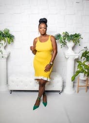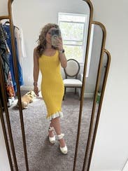 I’ve rented this in orange and when I saw it come in yellow it was a must rent. The ruffle at the bottom is so fun and is super high quality. You can feel the dress bounce when you walk. Highly recommend.