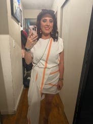 Loved the nod to being a Greek goddess in this one! The orange touches with the white was a treat! Loved this look!