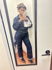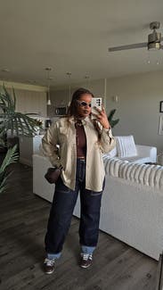 These jeans are the best little dark wash moment! The fabric is super comfortable, making it easy to wear all day. I especially appreciate the thoughtful details like the button fly and the neatly stitched cuff, which add a touch of sophistication. While I did have to cuff them again due to my shorter height (I'm 5'2"), I imagine they would be absolutely perfect on someone slightly taller. The versatility of this piece is also a huge plus; it looks great on its own, but it's even more stunning when paired with the matching jacket for a complete and polished look. Highly recommend!